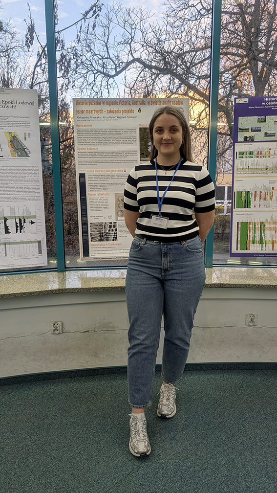 - Orłowska A., Bonk A., Tylmann W., 2026, Historia pożarów roślinności w regionie Victoria, Australia w świetle analiz osadów jezior maarowych – założenia projektu, XVI Sesja Paleolimnologiczna „Metody rekonstrukcji środowisk jeziorno-torfowiskowych”, 19–20.03.2026, Wrocław.